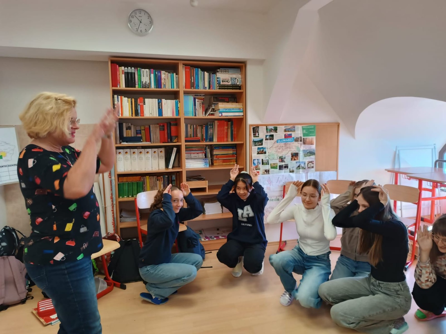 rámci programu "Erasmus Teacher Expert Mobility" na našej škole privítali dve mimoriadne sympatické učiteľky - Ulrike Arend a Manuelu Angerstein z nemeckej školy Paul Gerhardt Gymnasium v mestečku Dassel, ktoré počas celého týždňa viedli workshopy s našimi študentmi v nemeckom a anglickom jazyku a formou prezentácie bližšie oboznámili študentov s
